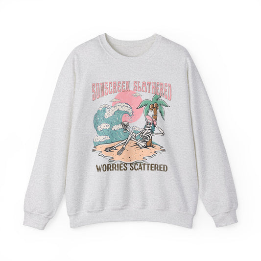 Sunscreen Slathered - Summer Skeleton - Cute Retro Sweatshirt