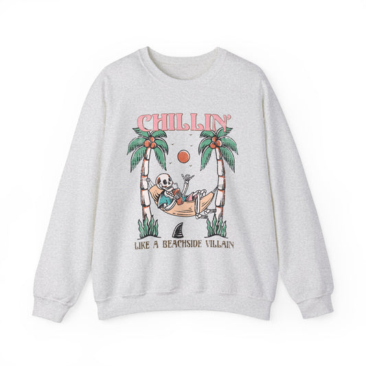 Chillin' At The Beach Villian - Summer Skeleton - Cute Retro Sweatshirt