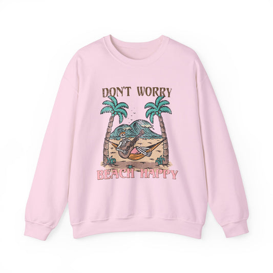Don't Worry Beach Happy Skeleton Summer/Halloween - Cute Retro Sweatshirt